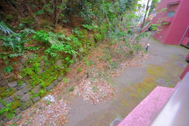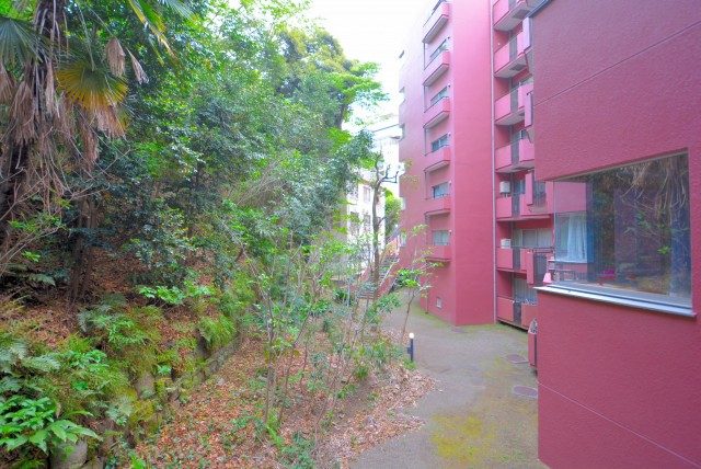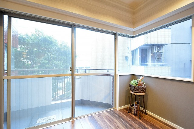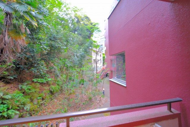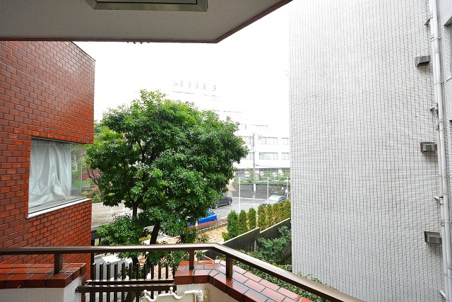 マンション自体は建物に囲まれるように建っているのですが、このお部屋はちょうどエントランスの真上辺りに位置しているため、正面には抜けた風景が広がっています。