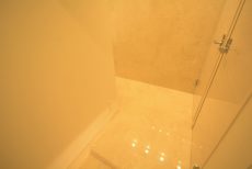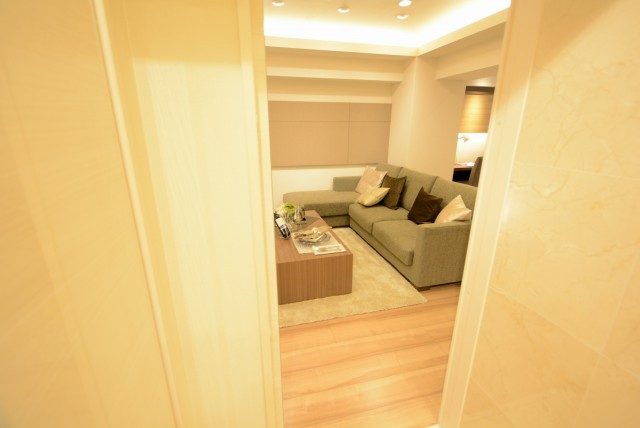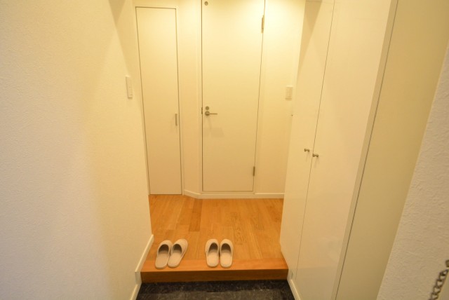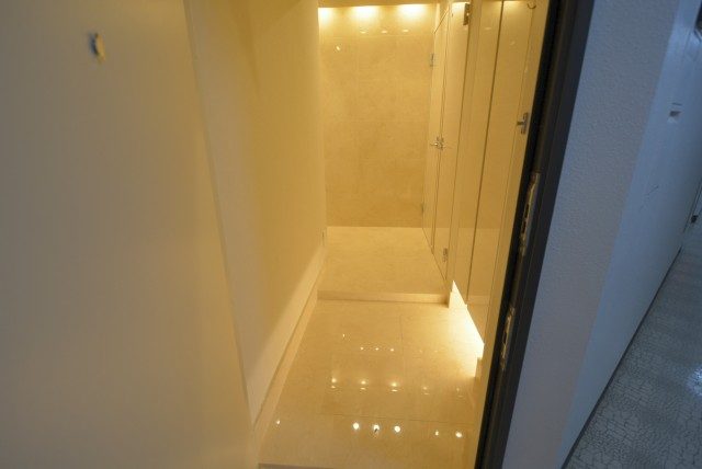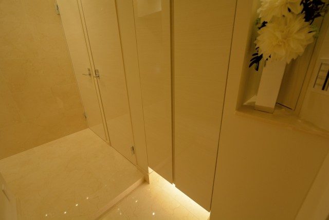 ドアをあけますと、高級感ある天然大理石貼りの玄関と廊下がみえます。