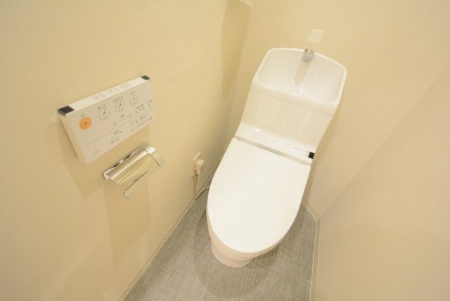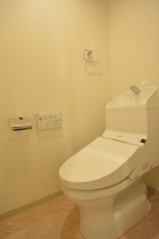 一体型ウォシュレット付トイレです。一体型とありお掃除もしやすく嬉しいですね。