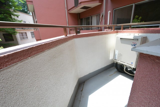 広さは3.29㎡とコンパクトですが、奥行があってお洗濯物なども干せるようになっています。北西向きなので陽が射す時間は限定的。とはいえ、北側の白い建物が光を反射してくれるので明るさは十分ですよ。