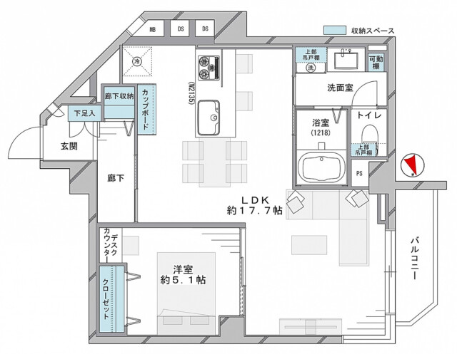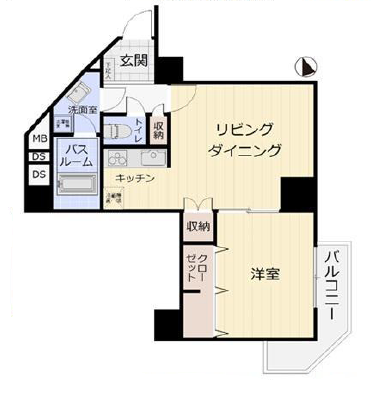 お部屋は5階、専有面積55.38㎡、間取りは1LDK。おひとり暮らしやDINKSの方にお勧めのお部屋です。