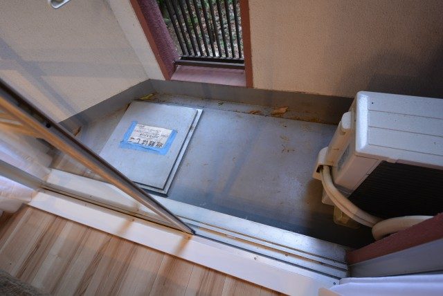数段上がると左側に集合ポスト、正面にエレベーターとなります。