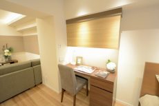 クローゼットは間口が広く使いやすそう。横に造り付けられたデスクは、ドレッサーとして使ったり、PCデスクにしたりと何かと便利なスペースです。