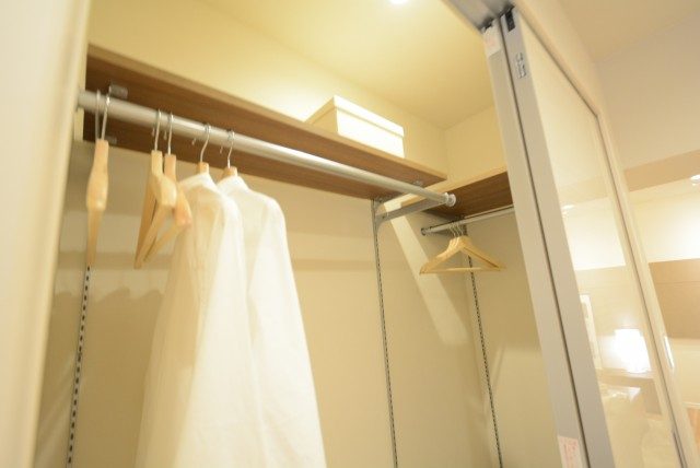 窓際には収納スペースもありハンガーポールを設置してクローゼットとしても、そのまま背の高いものを収納するスペースとしてもお使い頂けます。