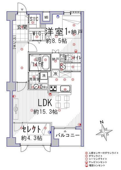 ■他・・・給湯設備交換、温水洗浄付きトイレ新規交換、人感センサー(玄関・トイレ)新設、LDKエアコン一基新設、洗面台新規交換、給排水管・ガス管交換、二重床・二重天井