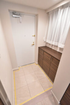 玄関には戸建て感覚のポーチ付き。ベビーカーや大事な自転車など置いておくことも出来そうです。小さいお子様が玄関から飛び出してヒヤリ!なんて時も安心ですね。