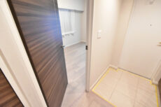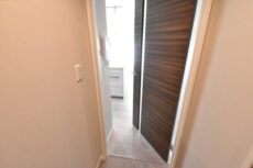 サービスルームと言っても大方は普通の部屋となんら変わりありません。建築基準法という法律で「採光のための窓の大きさが床面積の7分の1以上であること」等々の決まりがあり、その条件を満たしてないと洋室と呼ぶことが出来ないそうです。たまにコンセントがなかったりエアコンを設置出来なかったりする場合もありますが、リノベマンションの場合はほぼ大丈夫。逆にそこの確認が大事ということですね。このお部屋にはクローゼットだって付いています。