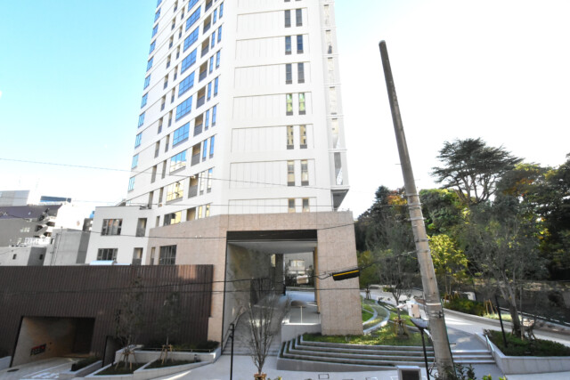大使館や綱町三井倶楽部が建ち並ぶ緑濃い自然と歴史を有する街に立地するタイル貼りのスタイリッシュなマンションです。