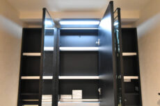洗面台下やミラーキャビネットなど収納も豊富。様々なタイプがあるので大きなものから細かいものまでぴたっと収まりそうですね。