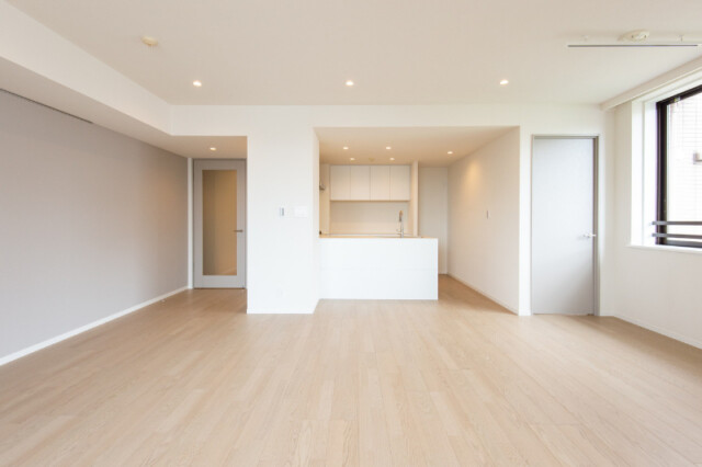 今回ご紹介するお部屋は4階、専有面積80.15㎡の2LDK。80㎡超のファミリータイプのお部屋です。LDKは約22帖!広々としたLDKっていいですよね♬