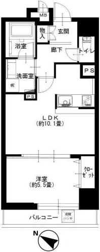 40.37㎡の1LDK。南東向きのお部屋です。