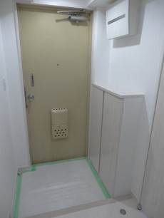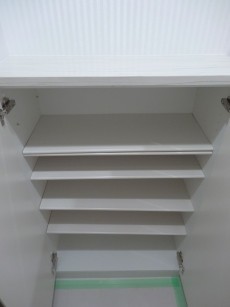 ロングタイプのシューズボックスは全身が映る姿見付き。