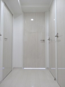 玄関をあがると扉がたくさん。各扉にはうすーく木目のような柄が入っています。