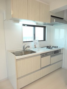 食洗機に浄水器付きとスペックも◎!目の前に窓があるので自然換気がしながら