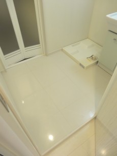 洗面室は入口入って右手に洗面化粧台と洗濯機置場、正面にバスルームの