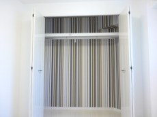 枕棚のついた幅広のクローゼットがつくられています。収納の中までオシャレな