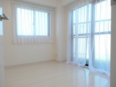 白基調のピカピカのフローリングと白いクロスの明るい空間です。