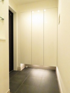 人感センサー付きの玄関ホール。人の気配で照明が消灯するのでスイッチを押す手間が省ける上、消し忘れがなく経済的です。