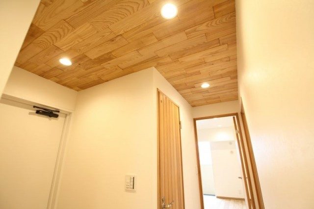 廊下の天井にも無垢材を化粧張りしており、どこにいても木材の温かみを感じられるデザインとなっております。