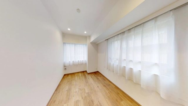 キッチンに近い洋室は約6.4帖。大きな物がすっぽり仕舞えるウォークインクローゼットがついています。バスルームと同じく、窓からの眺めもいいですよ☆