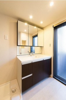 洗面台の横からはバルコニーに出ることができるので、お洗濯物はこちらで干していただいても良いかもですね~☆