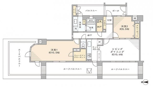 73.45㎡、2LDK+WIC そしてルーフバルコニーは40.56㎡ととっても広々!!