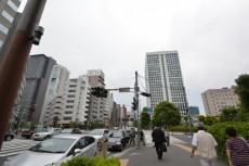 赤羽橋には国道1号線がとおり、南に行けば慶応大学・田町駅があります。