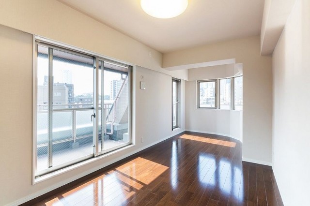 廊下一番奥の部屋は10.5帖の洋室です。北側が弧を描いている変わった部屋の造りで、とにかく窓が多くて明るいお部屋です☆
