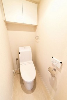 リビングの隣りにトイレがあります。上部には棚が付いているので、収納もしっかりできそうです(#^.^#)
