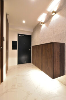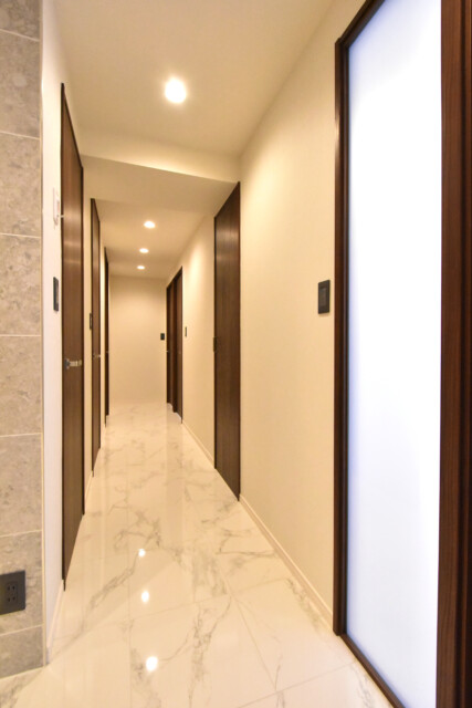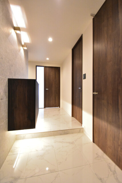 玄関から廊下にかけては大理石(風?)貼りで高級感のある雰囲気。「玄関は家の顔」と考えるとかなりのイケメンですね(笑)幅も広く使い勝手も良さそうです。
