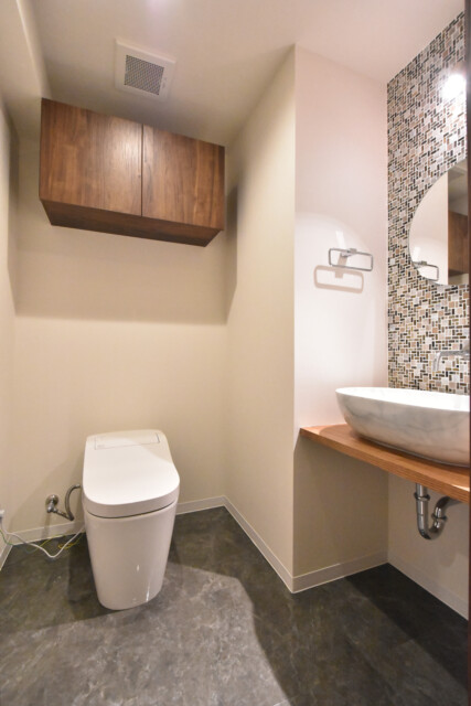 設置された手洗いボウルはトイレに置くにはもったいない気が・・・まるでオシャレなお店みたいです♪