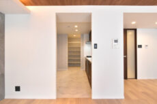 LDKと言ってもキッチンは独立タイプ。ご覧いただいているのは約19.8帖のリビングダイニング部分になります。正方形に近い形でレイアウトも自由自在!きっちり並べて落ち着きを持たせるもいいですし、斜めの配置を使って少し遊びを入れるのもいいですね。これだけ広いといろいろ考えるのも楽しそうです♬