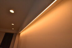 間接照明が設置され、柔らかな光を投げかけるとともに奥行のある広がりを演出してくれています。睡眠の質が悪くなるとかで、お休み前の強い光は厳禁らしいですからね。
