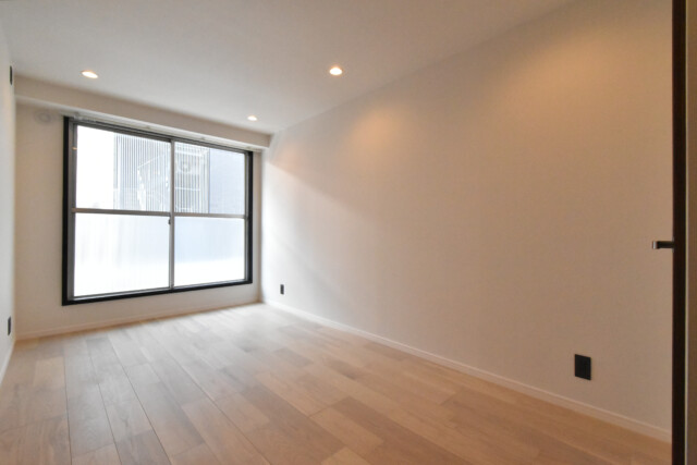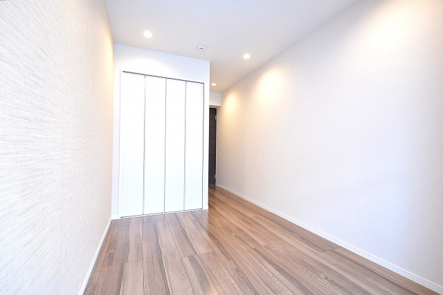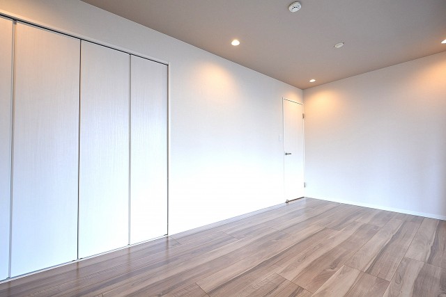 LDKと同じバルコニーに面したお部屋です。ただでさえ洋室としては広めなのに加え、梁や柱が全くないきれいな形。家具のレイアウトもしやすそうですね。ベッドもワンサイズ上を検討してはいかがですか?