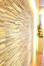 そして、壁は石張りで間接照明もアクセントになっています。