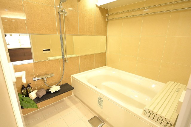 追い焚き機能が付いていてボタンひとつでお風呂の準備が可能。保温もできるのでご家族でお風呂の時間がバラバラになっても大丈夫!いつでも温かいお風呂に入れますよ。