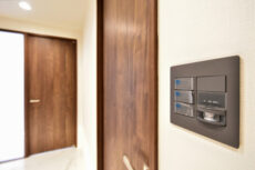 玄関照明には人感センサーが取り付けられ、中に入れば自動的に点灯するようになっています。暗い中手探りでスイッチを探したり、両手いっぱいの荷物を一度どこかに置いたりする必要もありません。いつでも明るい玄関が迎えてくれるのも嬉しいですよね♬