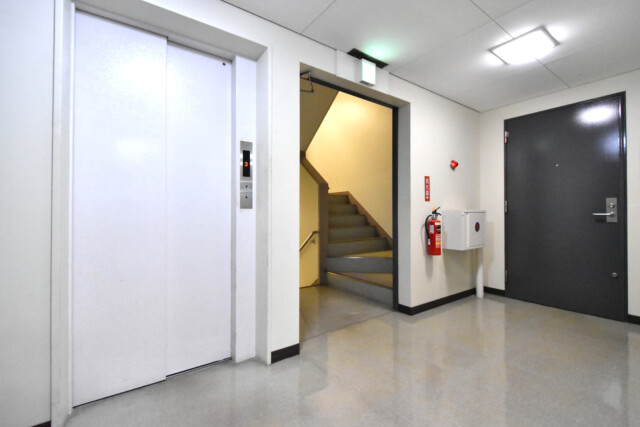 エレベーターはリニューアル済みでエントランスホールを挟み2基設置しています。