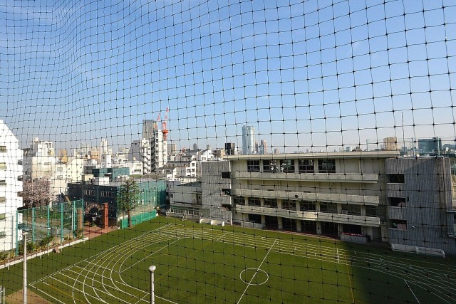 バルコニーの向かいは小学校。奥に六本木ヒルズも見えています!実際に見るともっと大きく感じられますよ。 ちょっとネットが貼られていて分かりづらいので、洋室のもう1つの窓から外の景色を見たのが下の写真です。