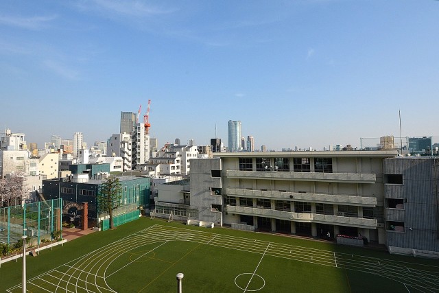 目の前には青山小学校。その先には都心にありながら緑も見えます。良い眺めです。
