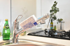 キッチンの水栓は浄水器一体型。ノズルも伸びます!
