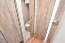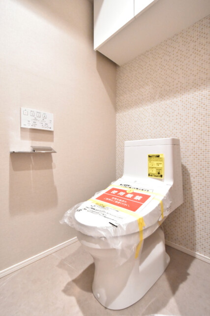 トイレ上部には吊戸棚付き。トイレットペーパーのストックやサニタリー用品を置いておくことができます。全て扉の中に隠れてしまうので、生活感もなくスッキリです。