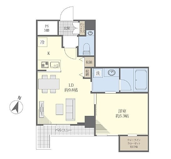 間取りのご紹介です。36㎡の1DK。シングルの方におすすめです。