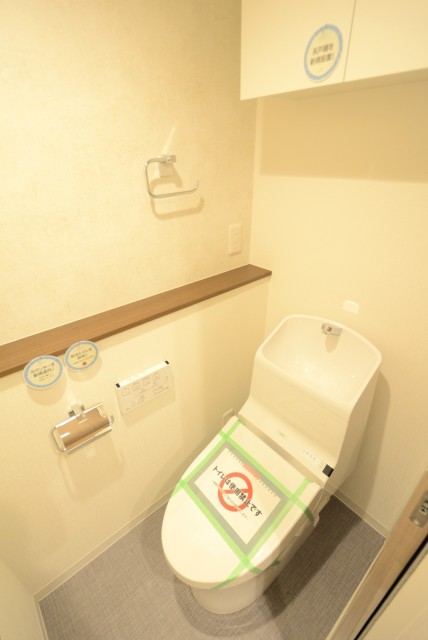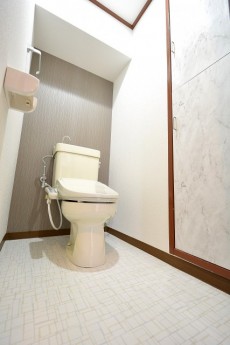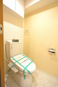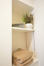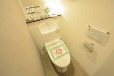 トイレ内には大きな収納棚が設置されていますのでトイレットペーパーのストックから清掃用具まで1か所にスッキリと片付けられます。