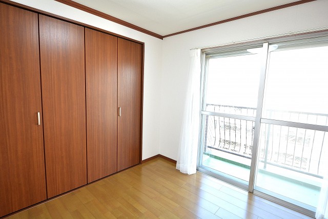 南東向きのバルコニーに面したお部屋です。先程の洋室と同様壁一面を使った大きなクローゼットが付いています。