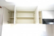 収納については、吊棚が付いていますがファミリーさんには足りないかも・・・。ですが、キッチンの空間が広く、冷蔵庫を置いてもスペースが余るくらいなので食器棚は少し大きめの物が置けますよ。