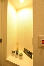 トイレは温水洗浄機能一体型。ちょっとした物を飾ってインテリアを楽しめるニッチカウンターが付いています。