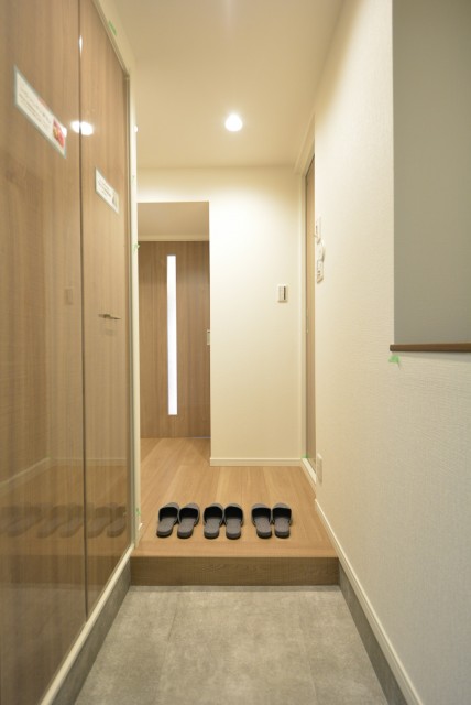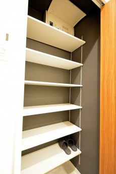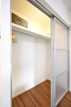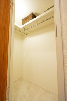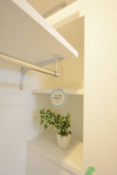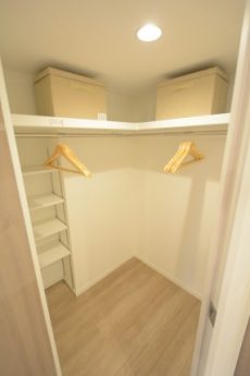正面には約0.7帖ほどのウォークインクローゼットがあり、玄関を上がりすぐに上着やコートなどをしまっておくことができます。