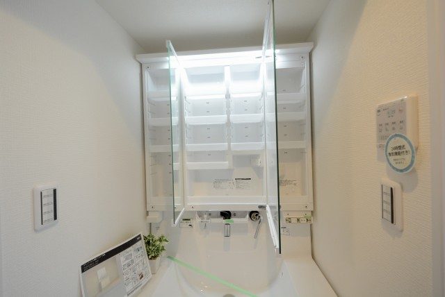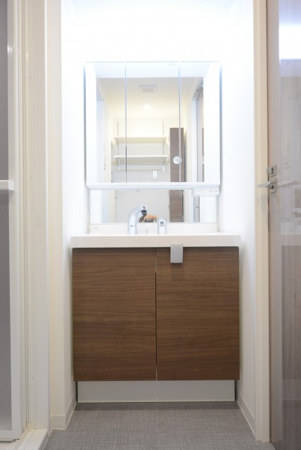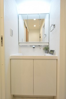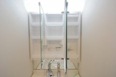洗面台は三面鏡で使いやすく、シャンプードレッサータイプで機能的です。