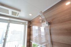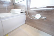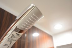 浴室は木目を生かしたパネルを使用。ゆとりの1317サイズと温かみのある雰囲気で一日の疲れもすっかり洗い流せますよ。浴槽も体に合わせたカーブが気持ち良さそうでついつい長風呂してしまいそう。そんな時でも追い焚き機能で保温してくれるので安心です。雨の季節に嬉しい浴室換気乾燥機付き。